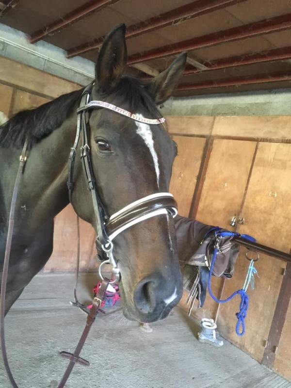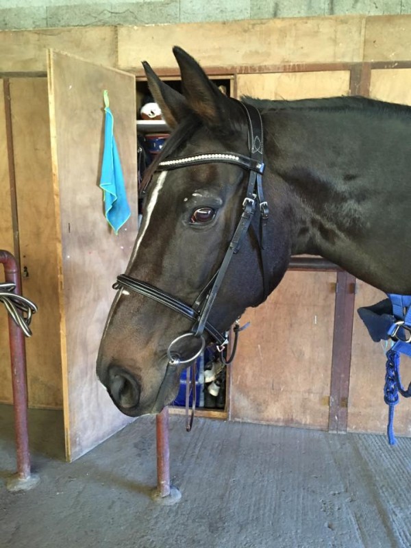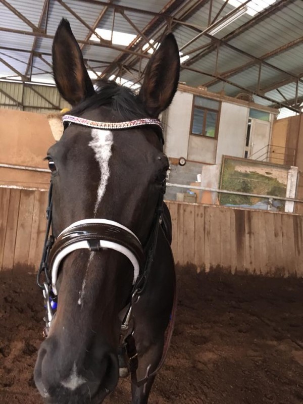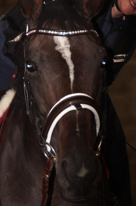 un noir forestier qui aura bientôt un frontal Perez sellerie vague en Swarovski Aurore boreales. qui va avec la selle de dressage.