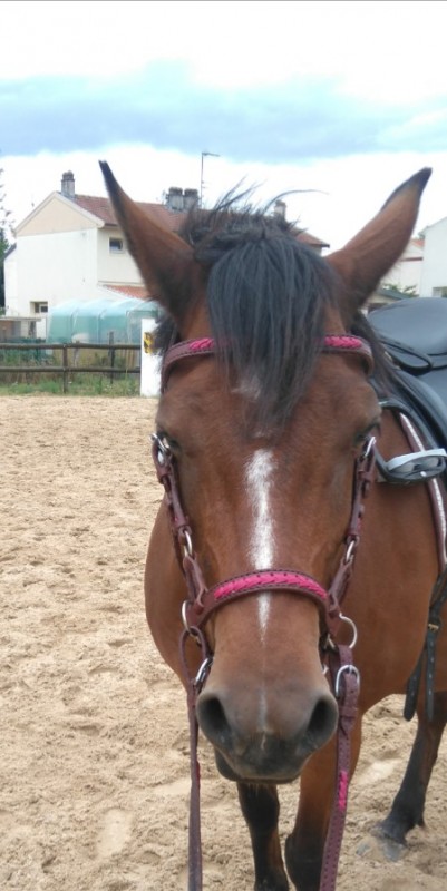Je ne sais pas, faudrait que je demande, c'est délicat, car c'est un cheval avec une grosse tête le sien, même pas sûre que la taille soit la bonne !
