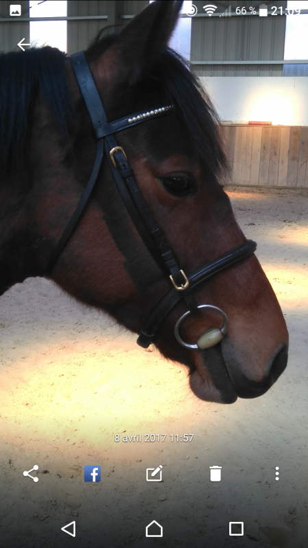 Pour les intéressés, je peux, si besoin, rajouter une muserolle achetée chez Kramer en attendant d'avoir les finances pour une Antarès, et même une paire de rênes en caoutchouc, pour 15€ de plus.