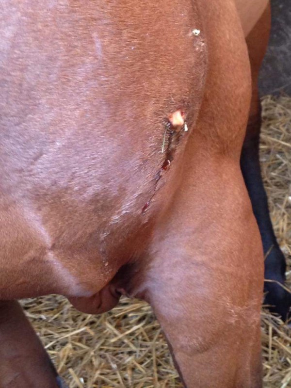 Le veto est passé ce matin et j'ai bien fait de m'écouter ! La plaie est profonde sur 5 cm de hauteur... J'avais deja un doute sur le fait qu'elle se soit prise un coup, mais la c'est confirmé : elle s'est plutôt empallée sur une branche ou quelque chose de pointu.