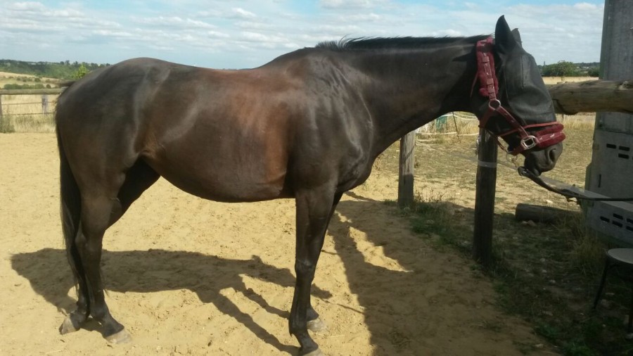 Ma jument est une Pur-sang anglais de 11 ans qui a quelques problèmes de dos mais rien de bien méchant mais il faut, pour la muscler, qu'elle soit travaillée tous les jours. J'ai eu du mal a trouver des DP pour venir la monter/Longer tous les jours mais ça y est.