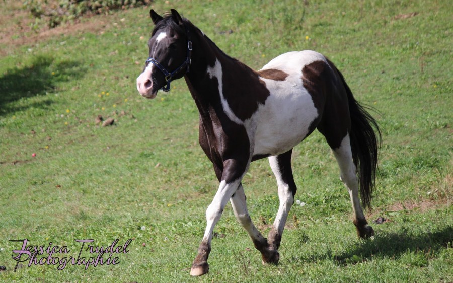 puis je sais pas comment je suis arrivée dans une coure où il y avait des poneys et des chevaux, je vais voir un poney gris il me semble puis je vois un cheval il devait faire 1m50, il était pie noir, yeux bleus, très fin un peu comme un arabe, sa crinière était très fine au naturel(pas coupée) et devait faire 30cm à tout casser