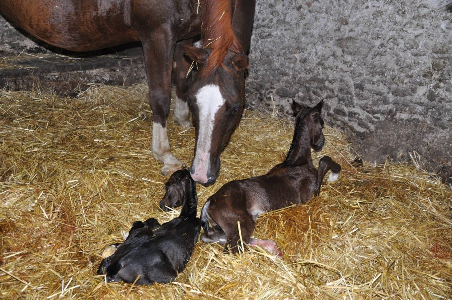 Voila des photos que j'ai réussi à récupérer, de lui lorsqu'il était poulain. On voit bien sur la première photo qu'il est vraiment plus petit que son frère jumeau.