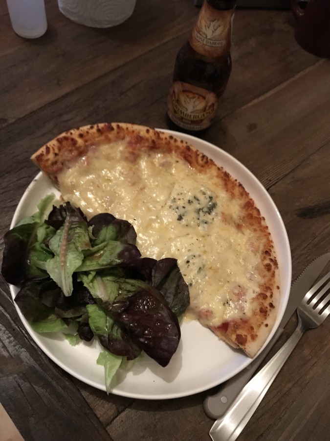 Menu du soir : Galette au sarrasin. En accompagnement, soit salade, soit soupe d'aubergine (elle était plus très belle :s)