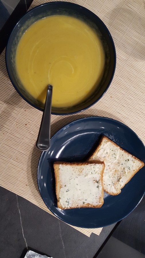 Je confirme. Soupe et toast de fromage frais aux herbes. Et en dessert pancakes!