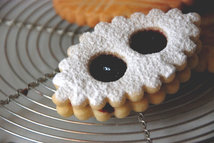 Oui des lunettes, ce sont deux biscuits superposés et fourrés de marmelade. celui du dessus est découpé de sorte qu'on voit la confiture. souvent découpé de deux cercles ... qui ressemblent donc à des lunettes et saupoudrés de sucre glace