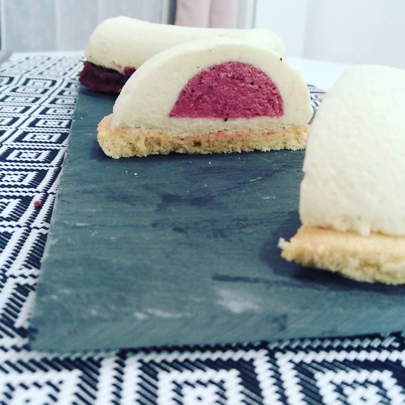 Mais j'ai tout de même présenté ma demi sphère chocolat blanc/mousse myrtille et biscuits Joconde ainsi que ma buche chocolat blanc/caramel/ganache chocolat noir avec biscuit Joconde au chocolat et un croustillant chocolat noir.
