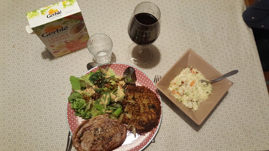 Ce soir pour moi tranche d'agneau crique salade. Et un verre de rouge.