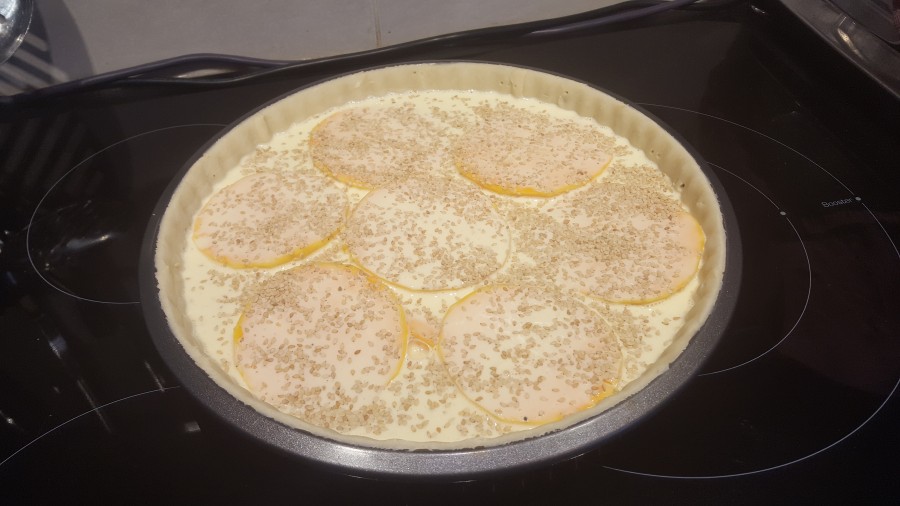 Ce soir je refais la quiche butternut/sésame mais avec un appareil un peu plus léger (la recette de base = 4 oeufs et 100g de fromage râpé, là j'ai mis 4 oeufs et de la crème légère). Une salade fenouil/pommes/gorgonzola. Tout est prêt, y'a plus qu'à cuire la quiche...