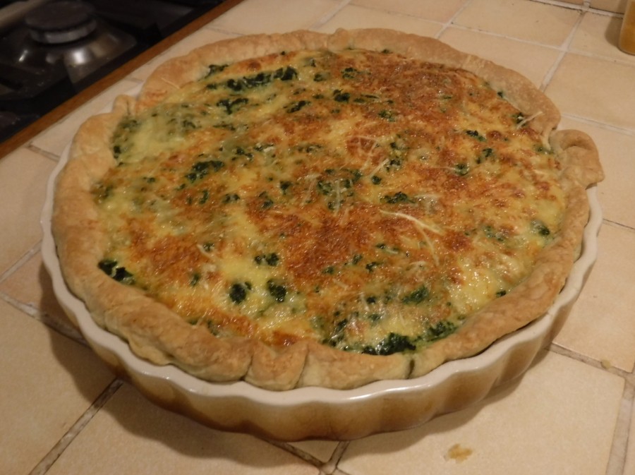 bettes: vert et côtes, fromage de chèvre ,crème , œuf, gruyère) et cela avec une pâte feuilletée 10' maison