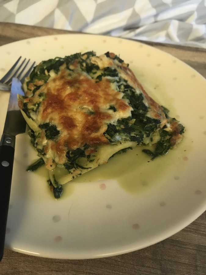 Lasagnes saumon-épinards (ça aurait été encore mieux avec du chèvre, mais comme d’hab Je n’ai pas planifié mes repas)