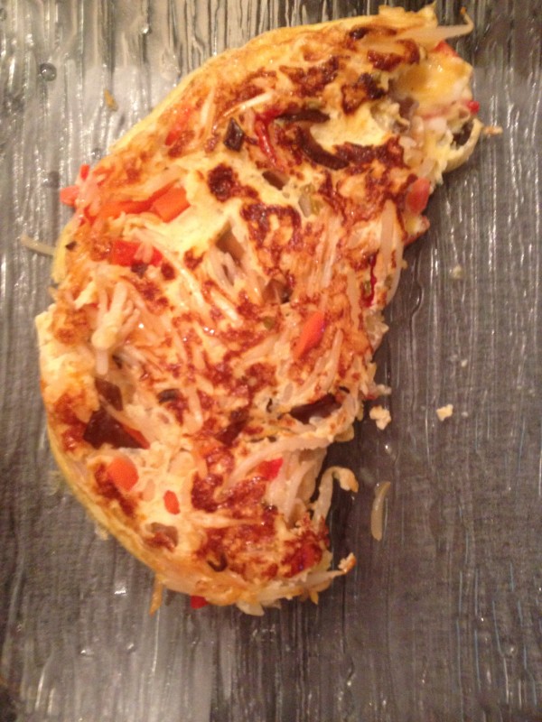 J'ai expérimenté ce soir: omelettes au légumes asiatiques. J'ai fait revenu un bocal de mélange de légumes pour wok suzi wan, puis j'ai fait cuire mes ?ufs en omelette par dessus. C'est pas mauvais