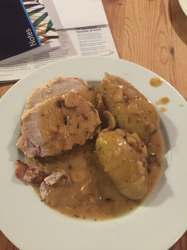 Sinon j'ai fait une salade de pommes de terres, tomate, oignon, noix, ?uf, lardons et saucisse pour l'homme
