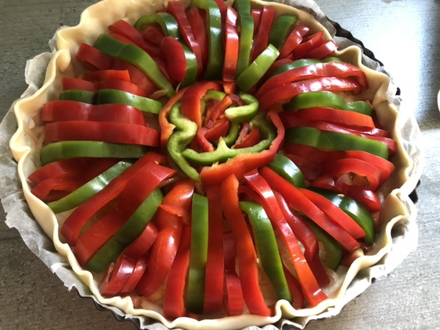 tu râpes des oignons et tu fais revenir la pâte obtenue avec un peu d'ail coupé minuscule, tu rajoutes crème ou tomates en dés, et tu fait cuire avec des poivrons rouges épluchés et émincés : ils fondent dans la sauce , c'est délicieux