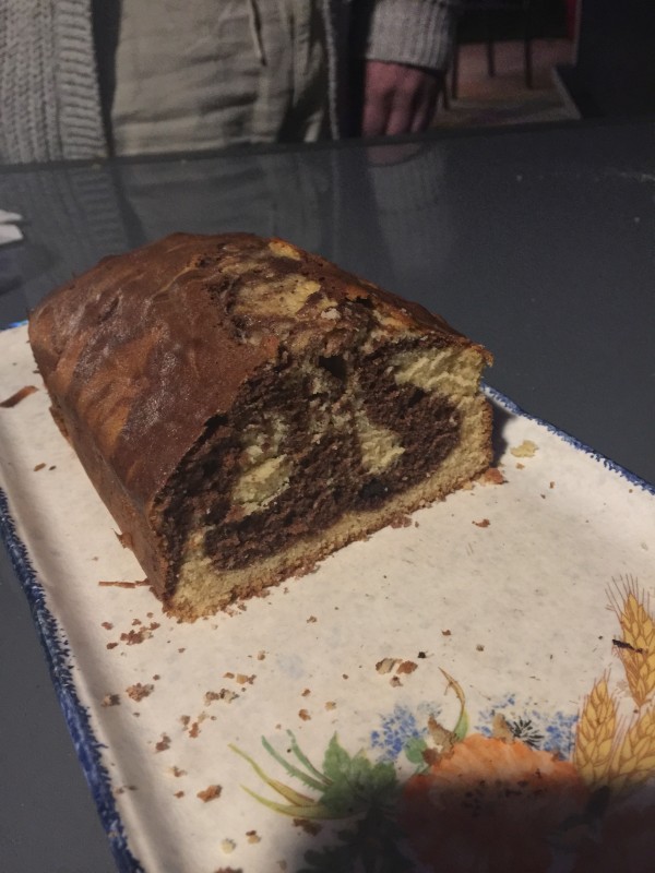 L'autre jour on a fait le marbré en ajoutant des pépites de chocolat avec mon copain pâtissier c'était trop Bon !