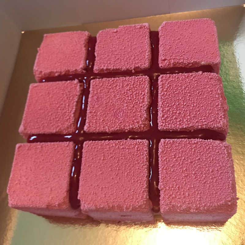 Le meme, avec une deco au spray velours rose et coulis de framboise.