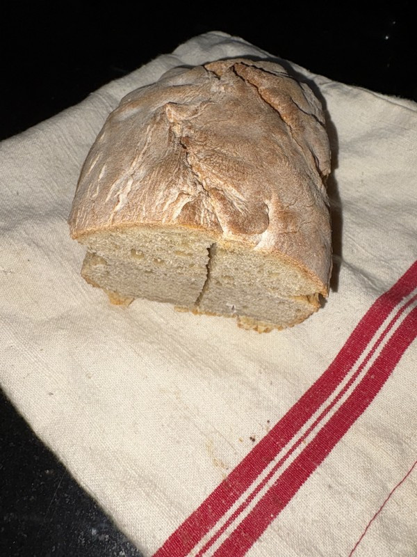 Concernant mon pain, je crois que je l’ai un peu moins bien réussi que la brioche… Comme quoi ! Il est un peu serré, mais se mange plutôt bien. Il a bon goût et la croûte est réussie, mais il y a encore des choses à améliorer ! Par contre, il a une fente verticale en plein milieu de la mie.