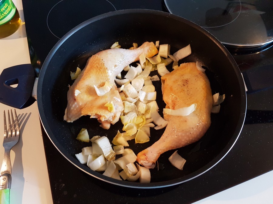 Ce soir c'était le poulet aux endives de la recette d'alma. Succulent...