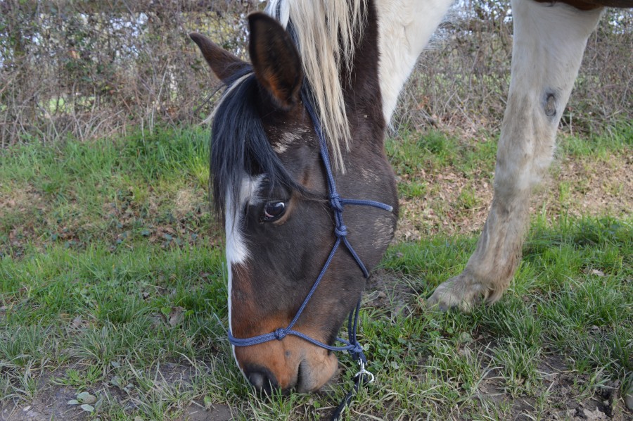 Sinon, en ce moment, je la laisse tranquille puisqu'elle a bien travaillé à pied en carrière la semaine dernière et que j'ai rien de nouveau à travailler. Hier, je la faisais brouter à l'extérieur. Bah, on a fait seules les 500 mètres jusqu'à l'écurie sans que la miss râle. Elle est restée calme dans l'écurie déserte puis on est rentrée sans soucis. Bref, elle commence à marcher sans les copines et ça, c'est cool