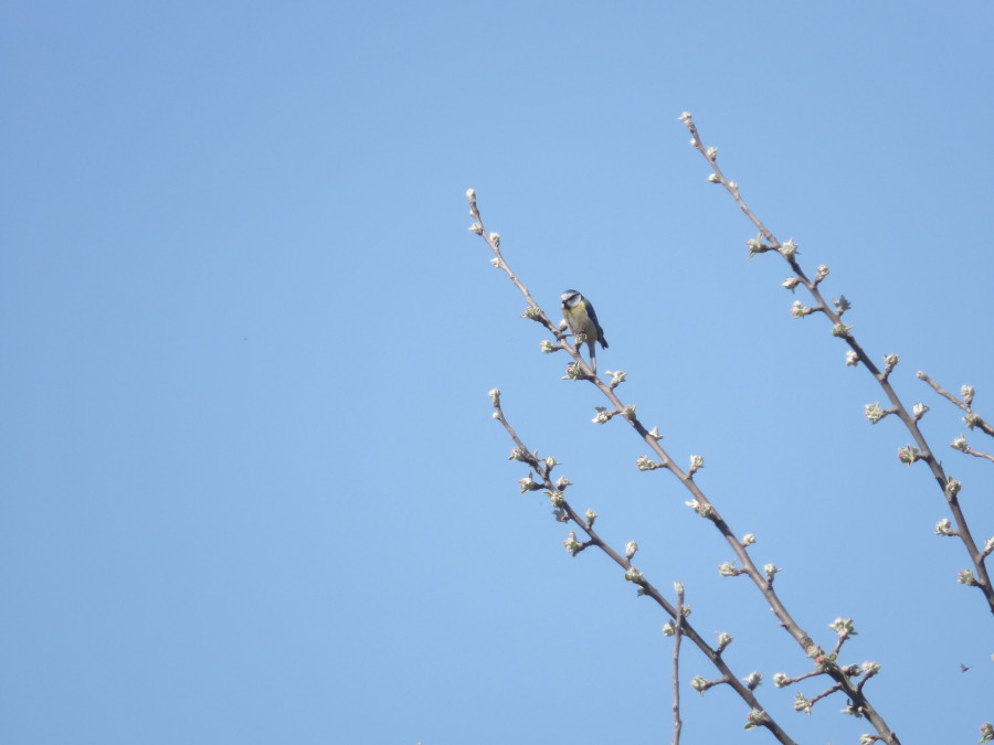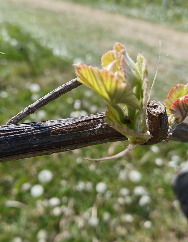 Sur la branche devant et un peu enroulée derrière le bourgeon