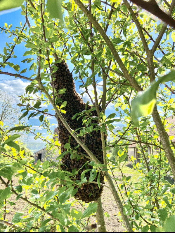 Bichette était par terre dans la cuisine, je l'ai mise dehors avec du miel, elle a l'air d'apprécier.