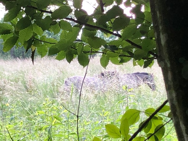 Ils ont aussi un sentier et font écrouler les murs pour traverser, puis passer par chez la voisine, pour aller boire au ruisseau plus bas. Au passage, l'été ils mangent les prunes, les pommes.... et je ne parle pas du potager.