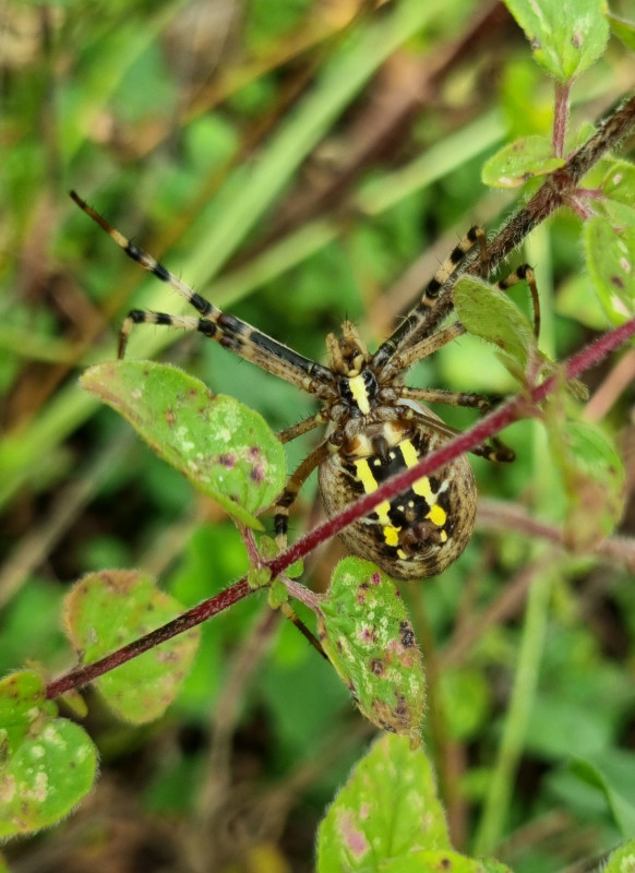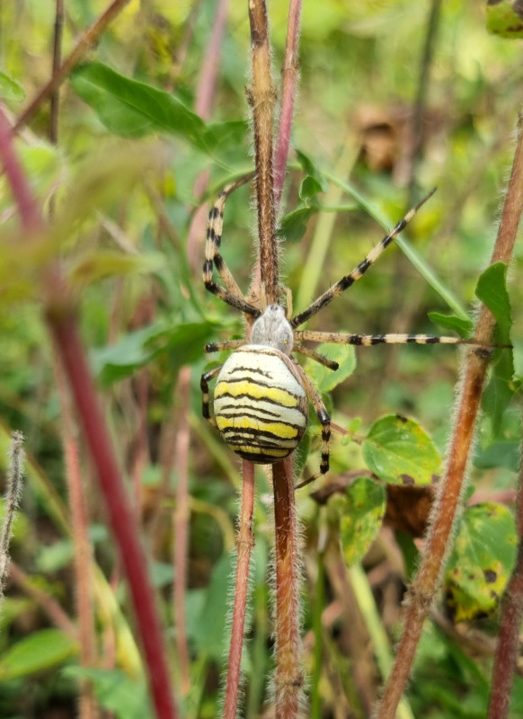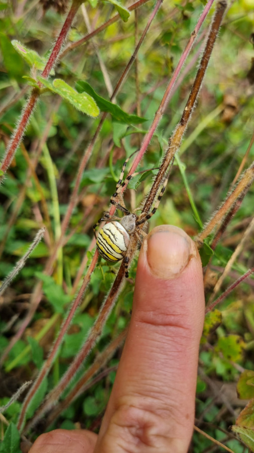 alecto je crois que c'est une un peu comme ça que j'ai vu l'autre jour en débroussaillant, mais bien plus grosse et plus jaune.