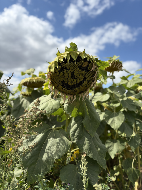 En attendant, photo prise tout à l'heure. Rien d'exceptionnel, mais visiblement un tournesol très content de me voir.