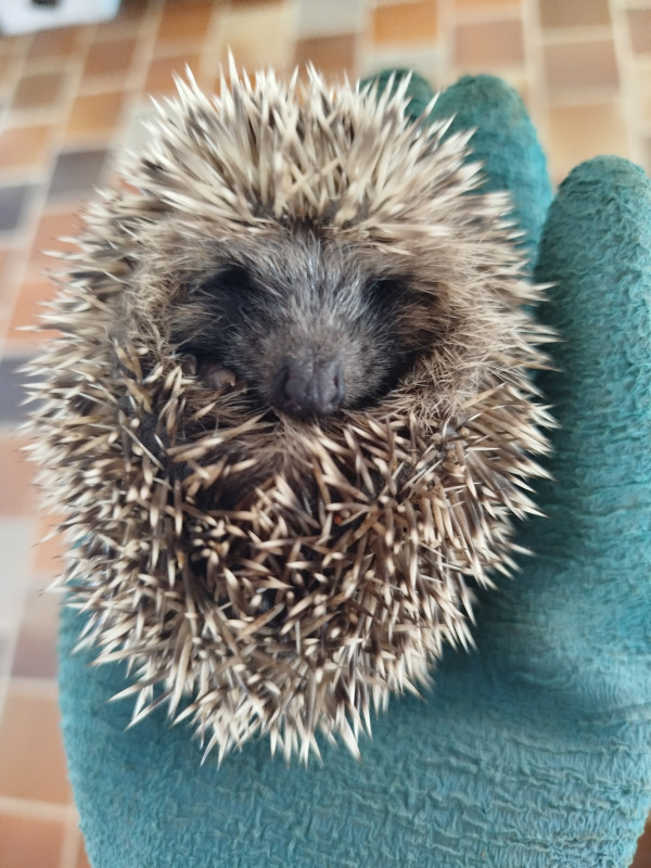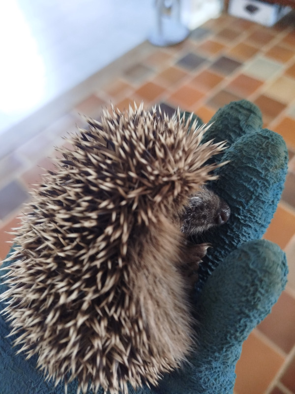 alma Pourrais-tu le peser ? Il me parait vraiment très (trop) petit pour survivre à l'hiver (quand je regarde la taille vs ton gant). A moins de 500g il n'a aucune chance de survivre à l'hibernation. Je me demande même s'il est réellement sevré et s'il sait se nourrir seul.