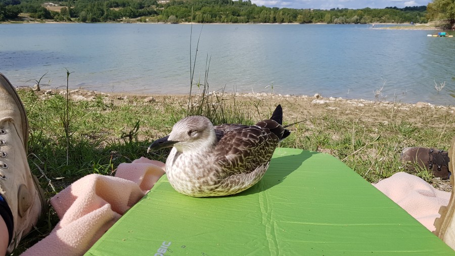 C'est un oiseau qui a visiblement été très imprégné par l'homme, elle a passé une heure collée à nos basques , jusqu'à se coucher avec nous sur mon tapis de sol , moment super sympa