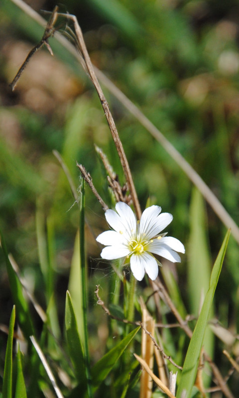 La 2e fleur blanche est sans doute ce qu'on appelle une corbeille d'argent (vu le feuillage), c'est la même famille que la stellaire.