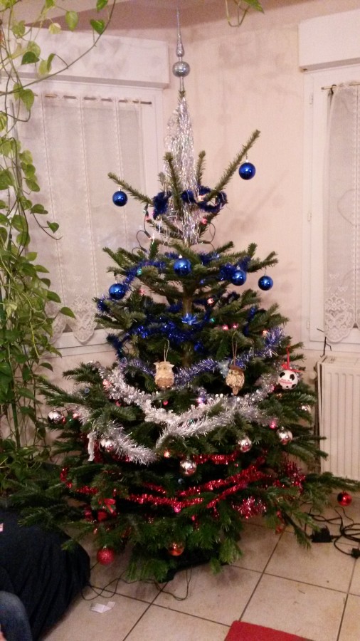 Voilà le sapin chez mes parents .. la photo est prise avec le portable .. et le contre jour.. ce soir avec le trépied et le reflex ca sera de suite plus jolie...