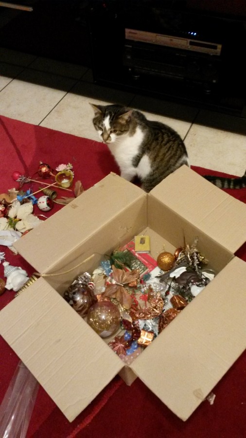 J'avais acheté lors des soldes des produits de noël l'année dernière ces nouvelles boules, mais j'avais pris 2 guirlandes à "poils" en plastique argenté, mais j'aime pas, c'est trop gros, et ça va pas dans mon sapin !