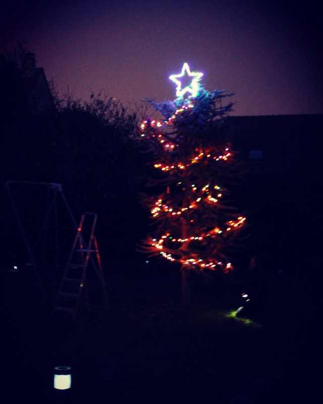 Mon père a décoré le sapin du jardin (un vrai cette fois-ci )