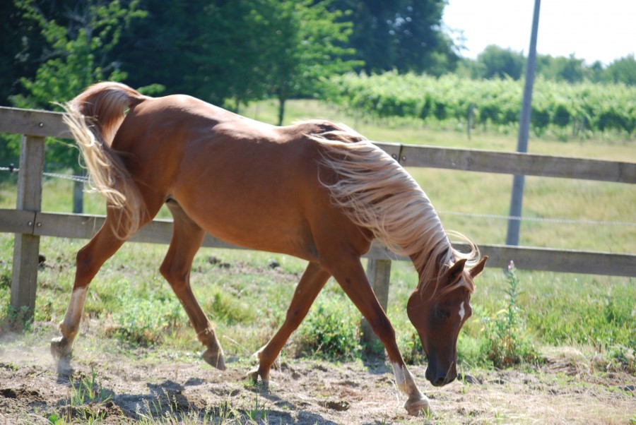 Un entier arabe de 2 ans alezan crins lavés sabino (on a aussi 1 poulain grisonnant de 2 ans), à vendre, qui pourraient convenir pour cette utilisation.